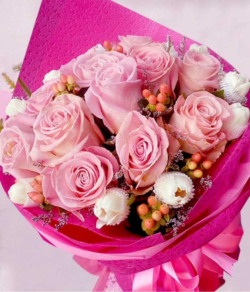1 dozen pink ecuadorian roses with 1 dozen white tulips